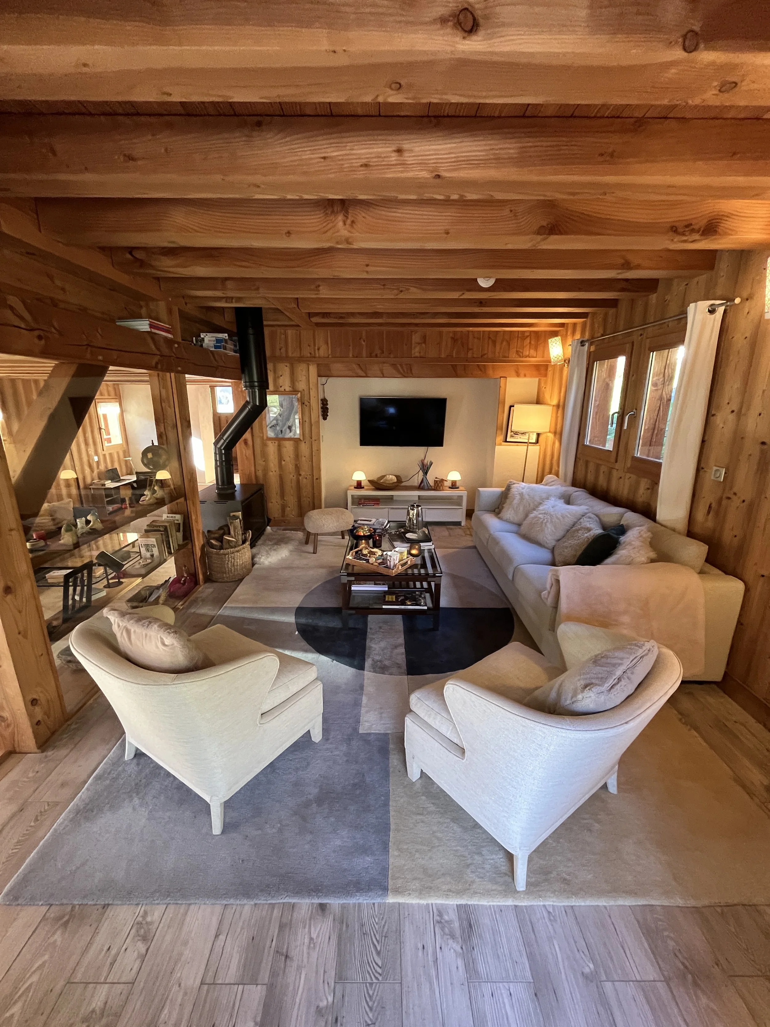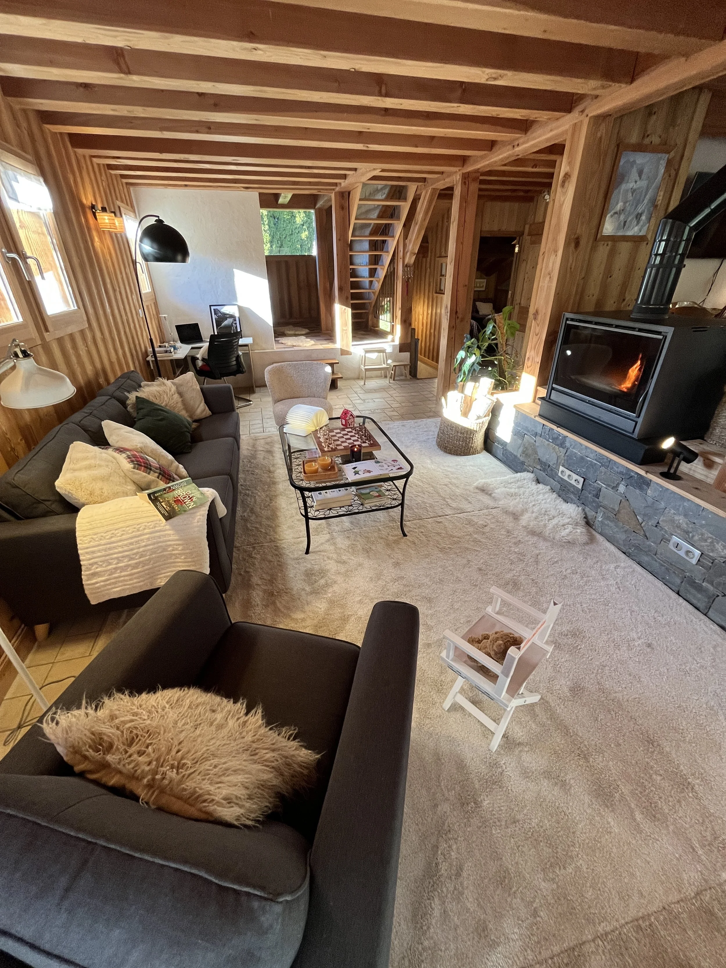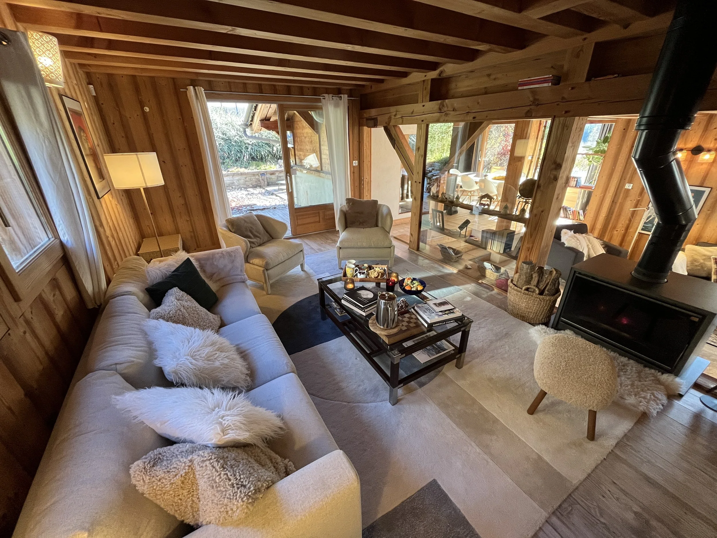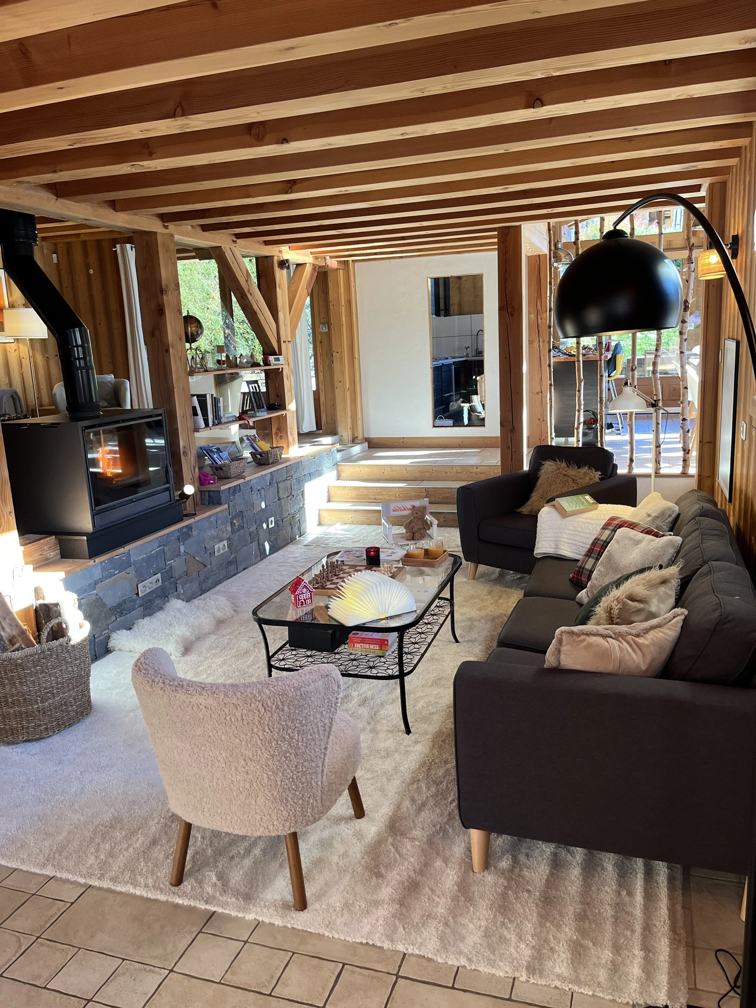 The heart of Chalet Mathilde is the large open living rooms with large kitchen full of light. A central log burner provides the heat and coziness we all seek during cold winter evenings.