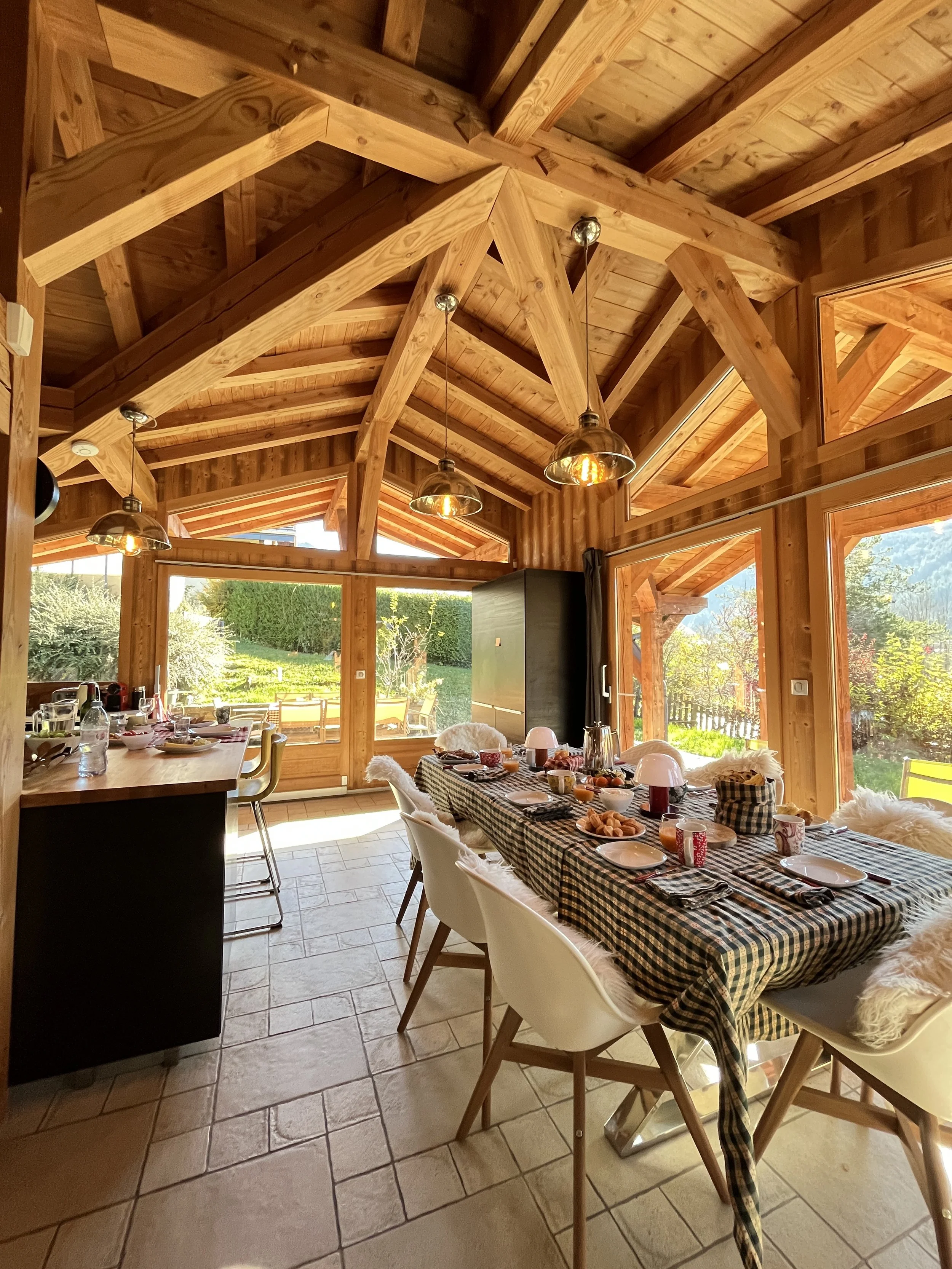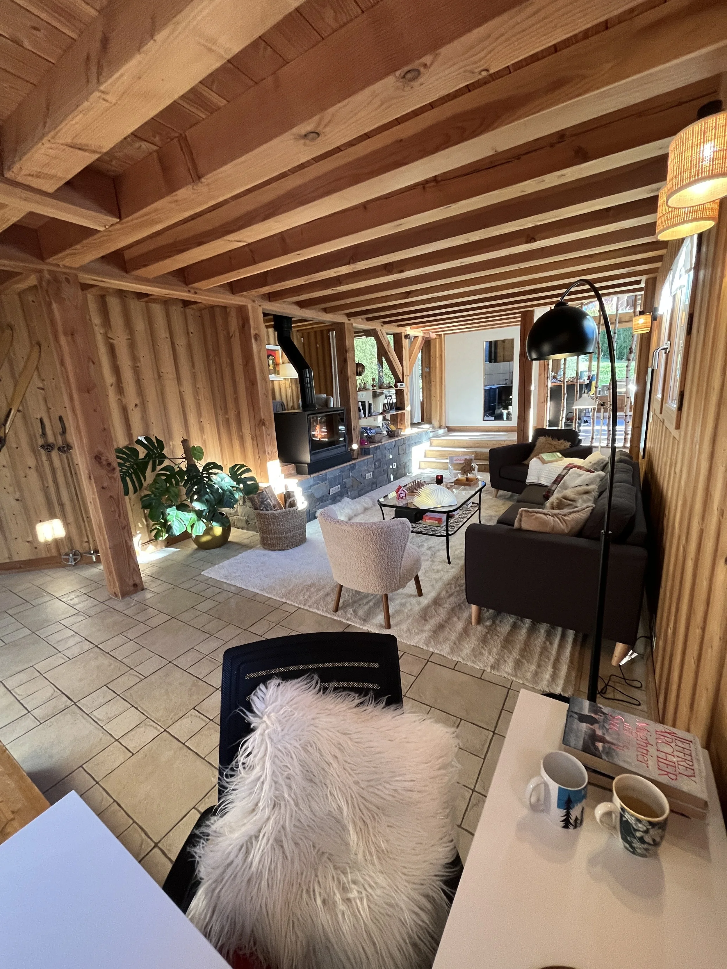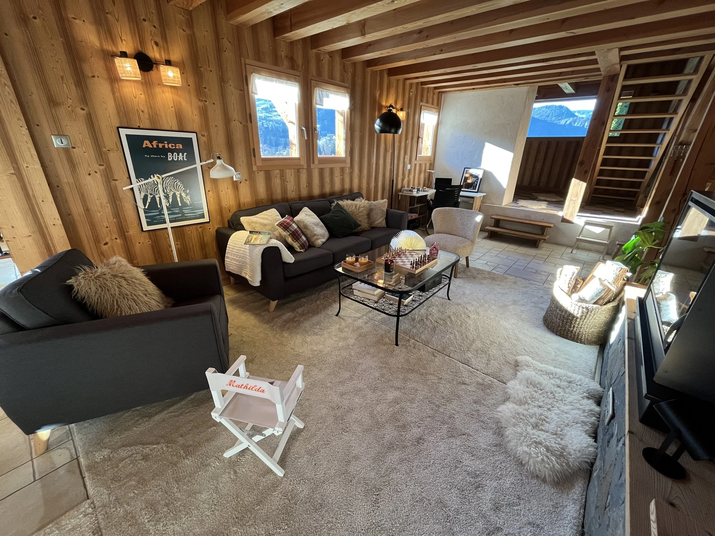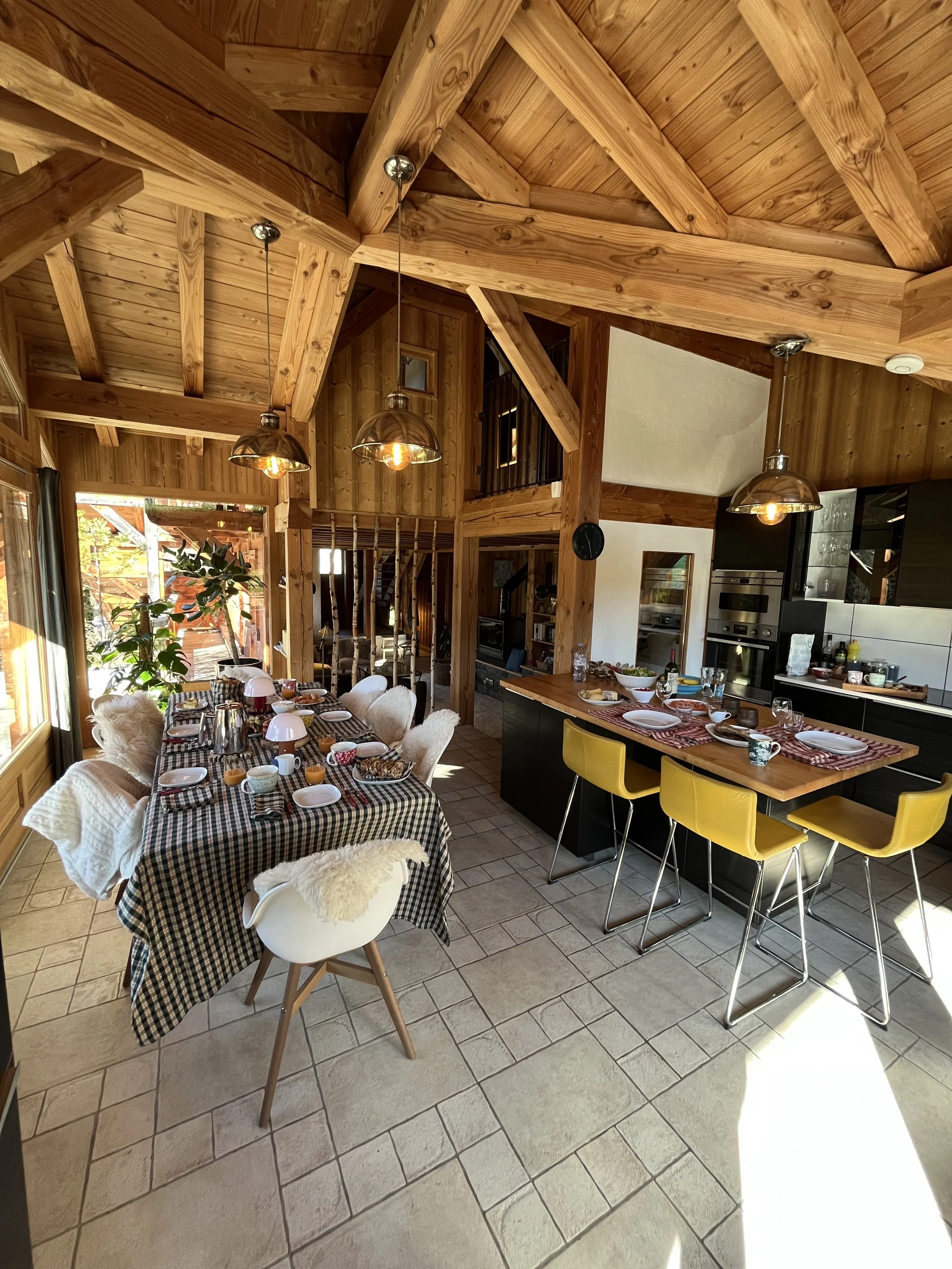 The heart of Chalet Mathilde is the large open living rooms with large kitchen full of light. A central log burner provides the heat and coziness we all seek during cold winter evenings.