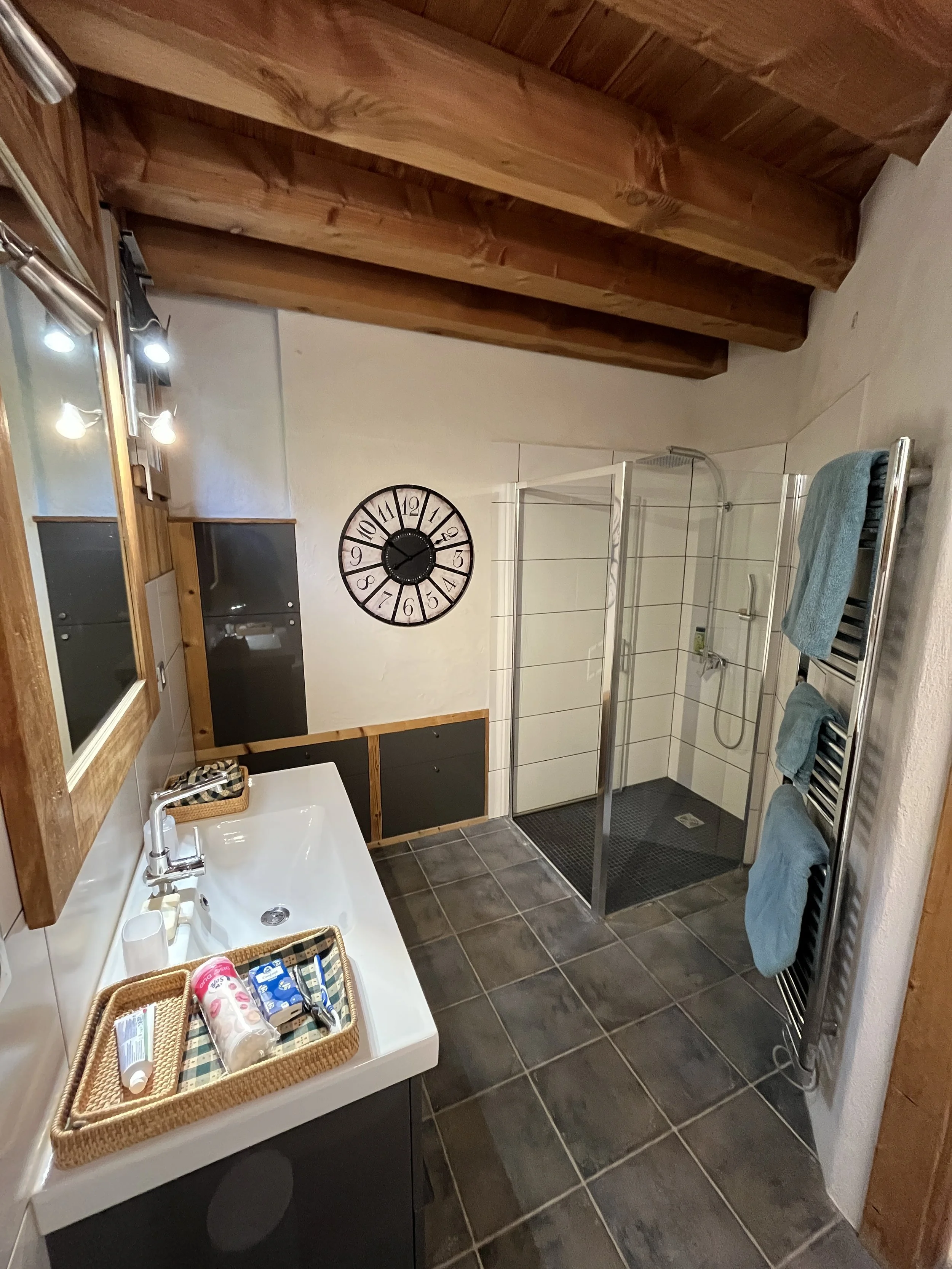 On the ground floor, an independent apartment is rented to a wonderful couple who look after the chalet - They are mostly out during the day, very kind and discreet, they can certainly give you tips about the local shops/restaurants & activities. They do not have access to the chalet or utility room.